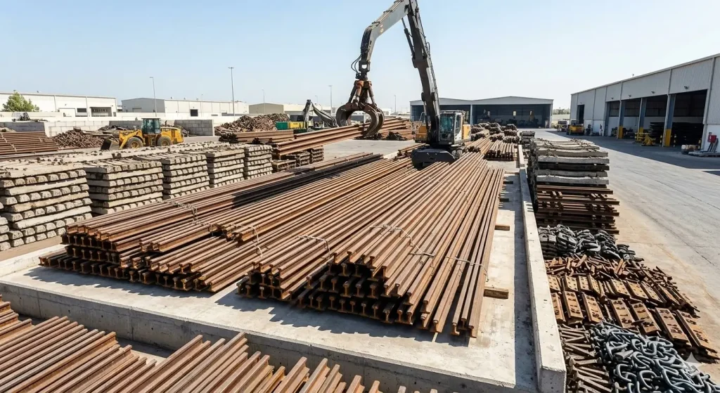 As Rana Trading FZCO is a trusted supplier of high-quality Railway Track Material, including used rails, sleepers, and various track fastenings. Our rail scrap is highly valued for its superior metallurgical properties, as it is manufactured from high-carbon manganese steel. We provide meticulously sorted and cut rail scrap that meets international ISRI 50-65 specifications, offering an exceptional raw material source for steel mills and foundries requiring high-strength alloys and structural steel production.